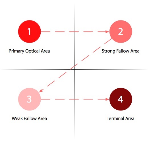 A study by ConversionXL provides a clear view about the way people view websites. It can be represented through a type of visual known as the Gutenberg diagram.